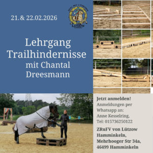 Geritten wird in 3er Gruppen 60 Minuten. Kosten Vereinsmitglieder von Lützow Hamminkeln 50 Euro, für nicht Vereinsmitglieder 60 Euro.