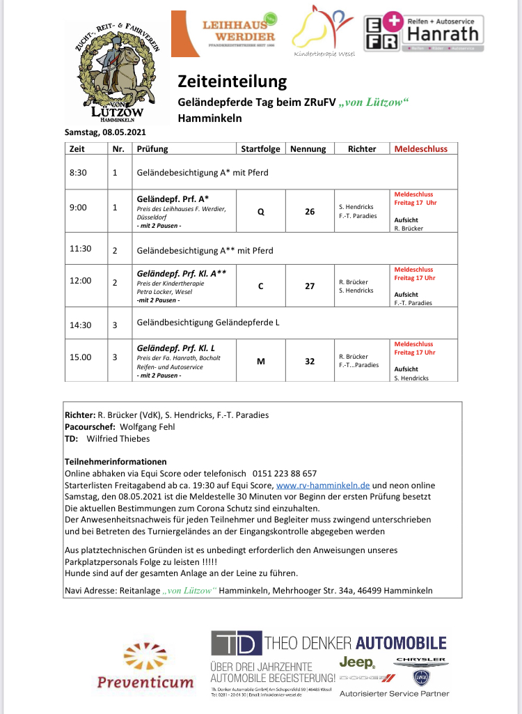 Hygienekonzept für das Profiturnier Geländepferde am 08.05.2021