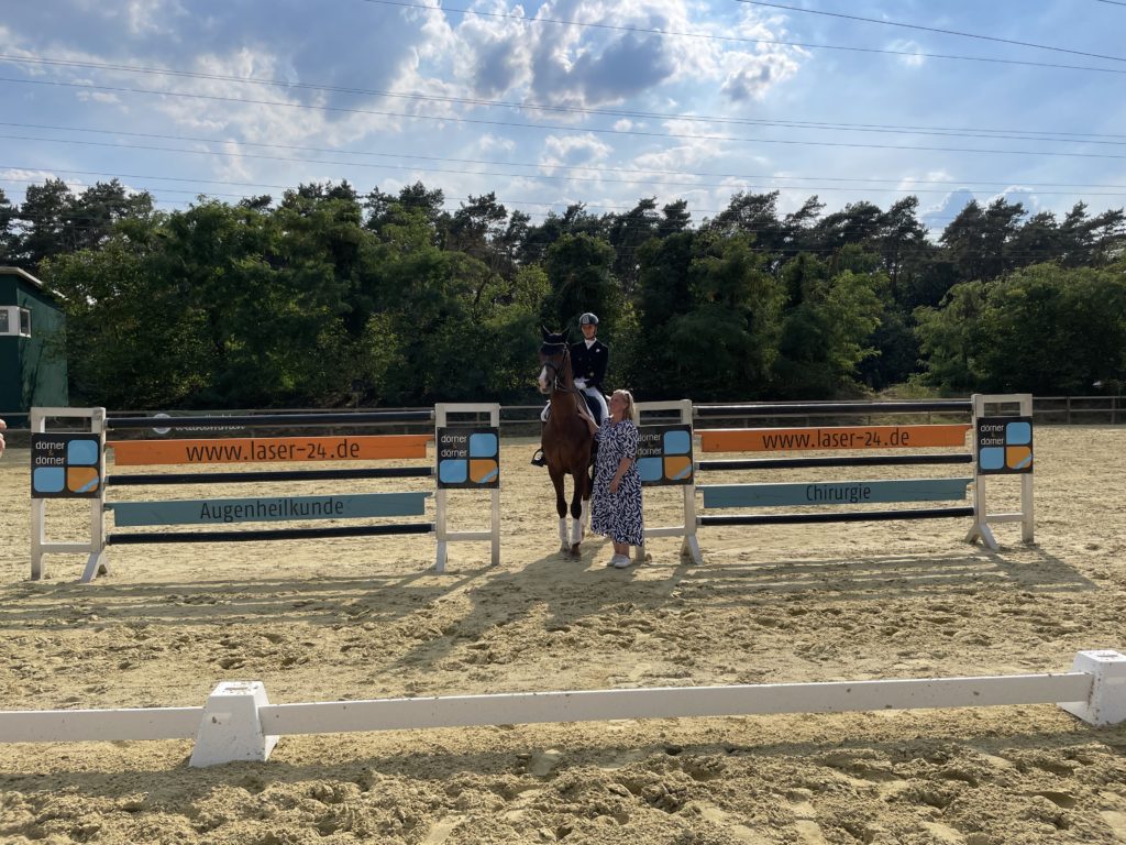 Dressurturnier 2022 Dressurturnier 2022 14. August 2022 Catrin Mueller Wir gratulieren Kira Laura Soddemann mit Schuhbeck zu ihrem Sieg in der Dressurprüfung Klasse S*! Die Prüfung wurde gesponsert von Dörner & Dörner Augenheilkunde! Wir bedanken uns für den Ehrenpreis und die Prüfungsübernahme!